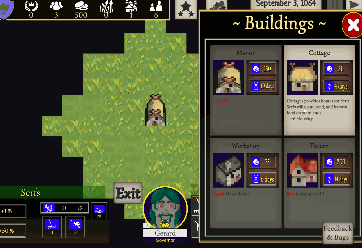 - Level 2: Hamlet - Reach 25 Serfs