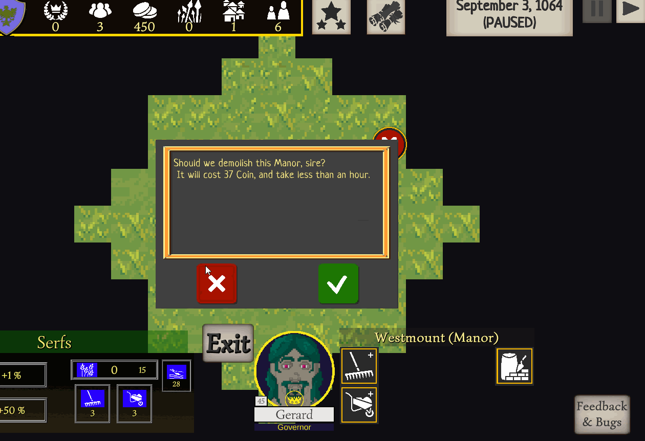 - Double confirmation if you try to tear down your manor